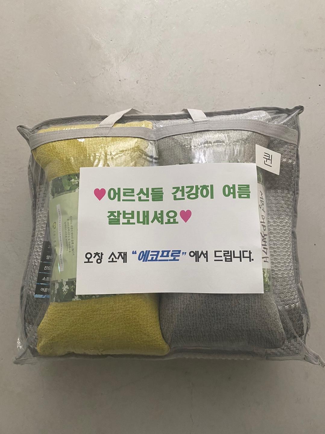 기탁한 쿨매트세트는 열악한 주거환경으로 폭염 대처에 어려움이 있는 저소득 노인 100가구에 전달되었습니다.