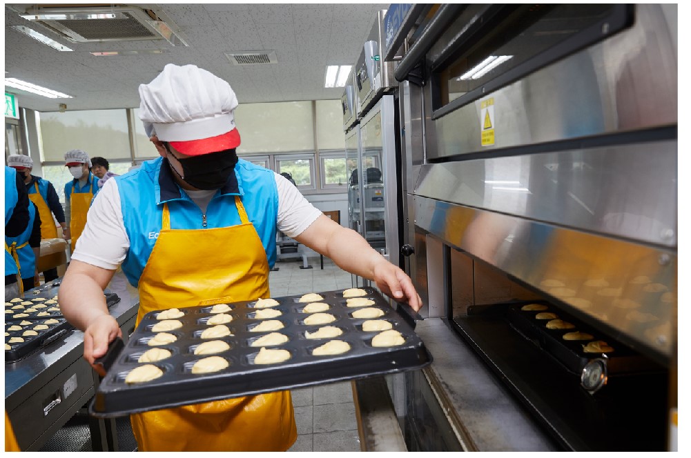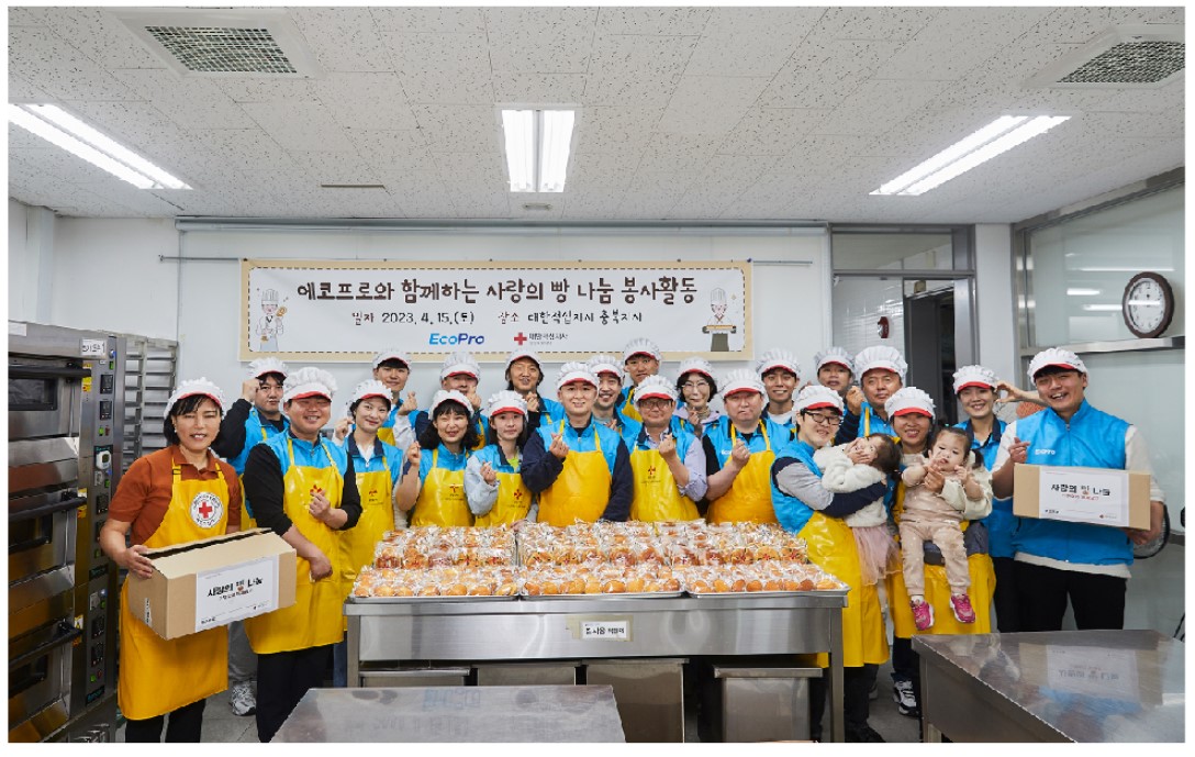 에코프로 직원들이 한 자리에 모여 제빵 봉사활동을 진행했습니다.