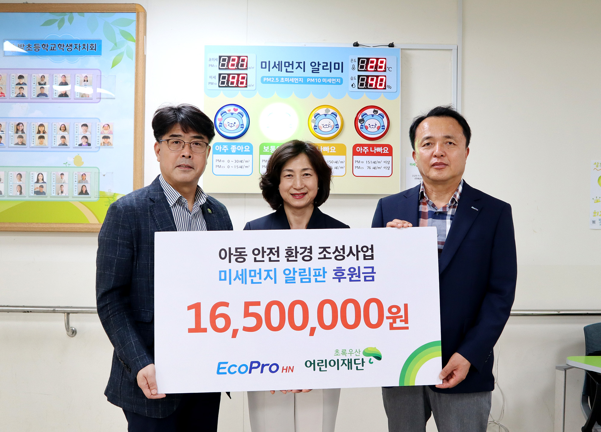 6월 14일, 에코프로HN에서는 청주시 아동의 안전 환경 조성을 위해 초록우산어린이재단과 함께 미세먼지 알림판 설치 사업을 진행했습니다.