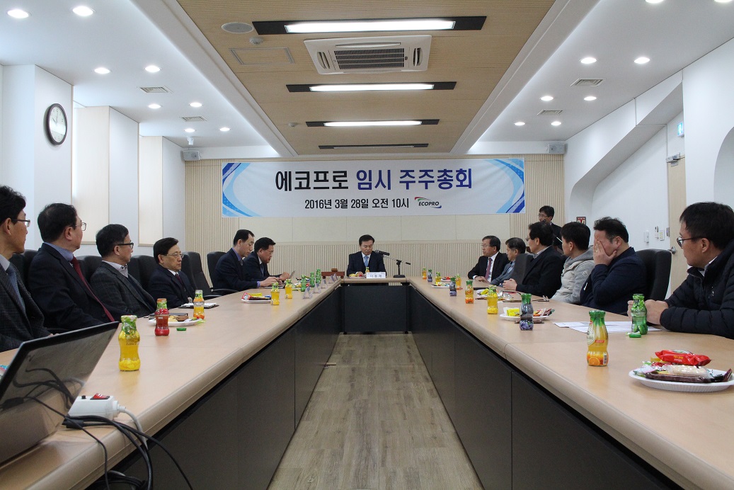 [공고] 제19기 임시주주총회 개최 2016.03.28 당사는 2016년 03월 28일 본사 회의실에서 전지부문 물적분할 승인을 위한 제 19기 임시주주총회를 개최하였습니다. 발행주식 총수의 37.5%가 참석하고 출석 주식 99.7%의 동의를 거쳐 금번 임시주총에 상정된 전지부문 물적분할 안건은 원안대로 승인되었습니다. 주주님들의 회사에 대한 성원과 관심, 따듯한 격려에 다시 한번 감사말씀 드립니다. 목록보기