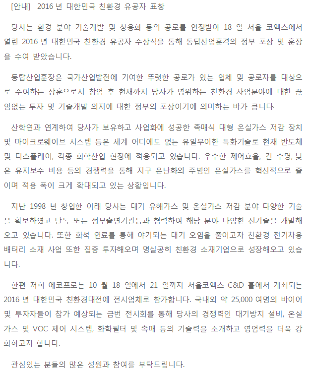 [안내] 2016년 대한민국 친환경 유공자 표창