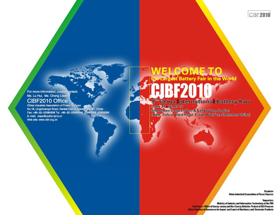 당사는 2010년 6월 24일부터 중국심천에서 개최되는 세계 최대 규모의 전지 전문 전시회인 중국 국제전지전시회(ChinaInternational Battery Fair)에 참가합니다.