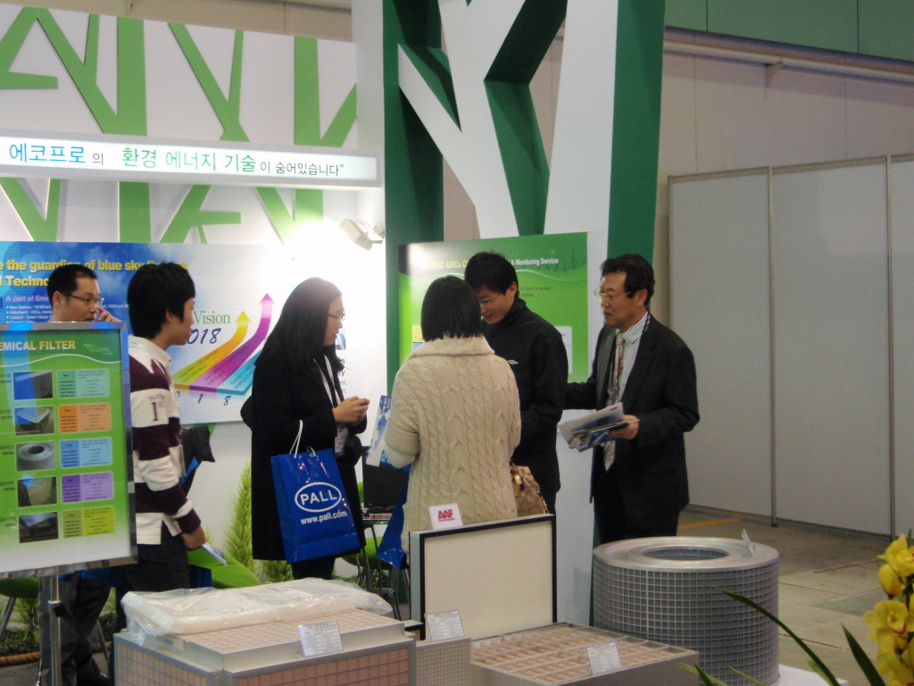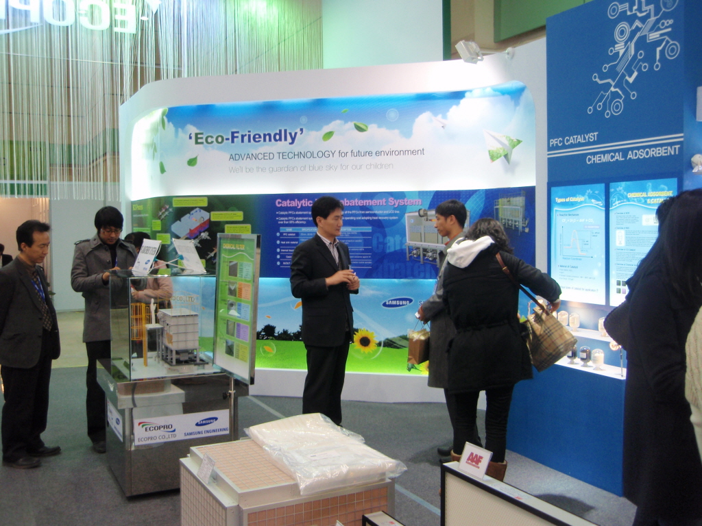 PFC Gas 제어설비, Chemical Air Filter, 유해가스 제어용 소재 등 반도체&LCD 산업 현장에 적용되는 당사의 주요 제품들을 실물(모형 포함) 전시하였으며, 삼성전자, 하이닉스를 포함다수의 국내 외 관련 산업 종사자들이 당사 부스를 방문하여 많은 관심을 보이는 자리가 되었습니다.