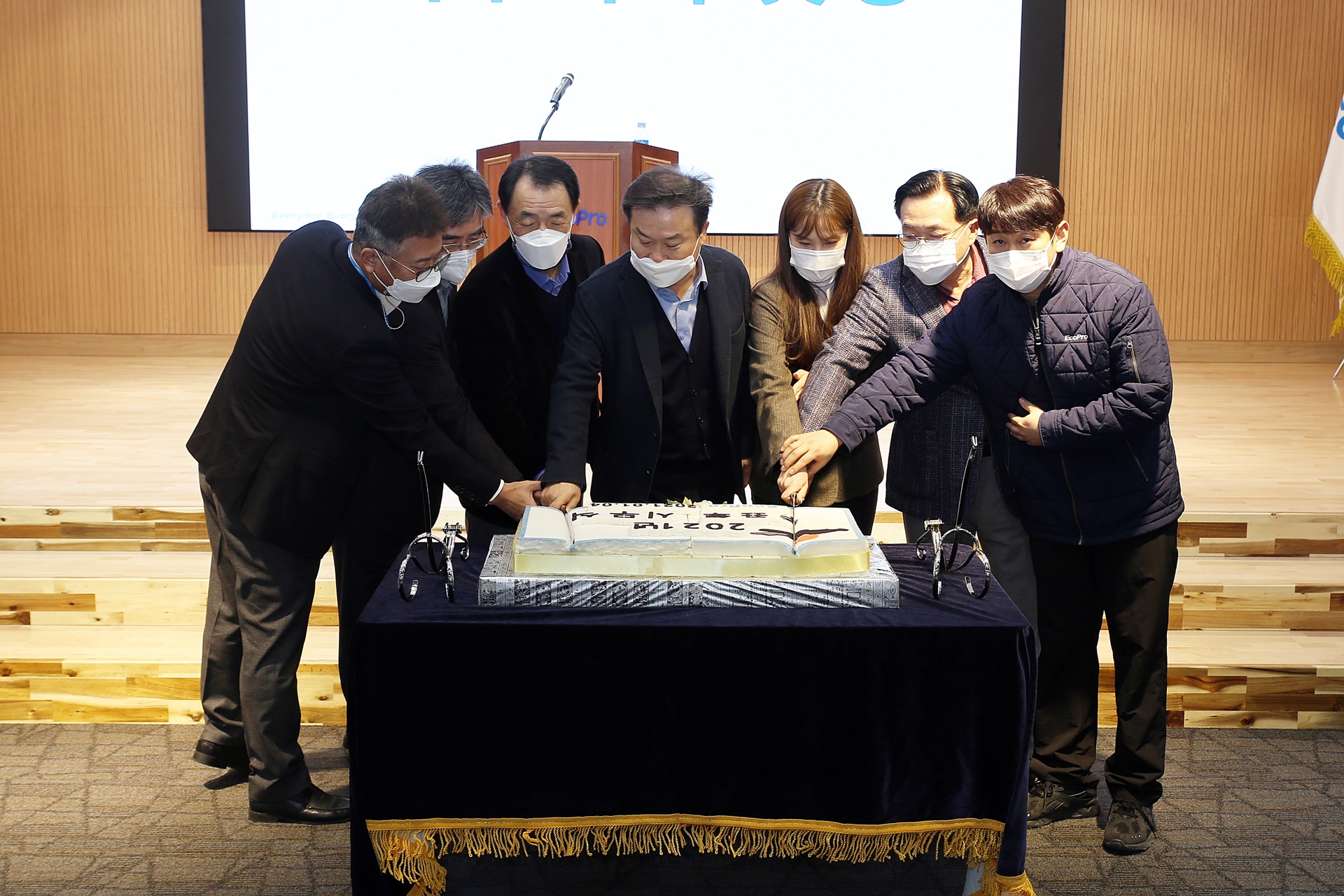 2021년 시무식 행사가 에코프로 본사 6층 에코홀에서 개최되었습니다.